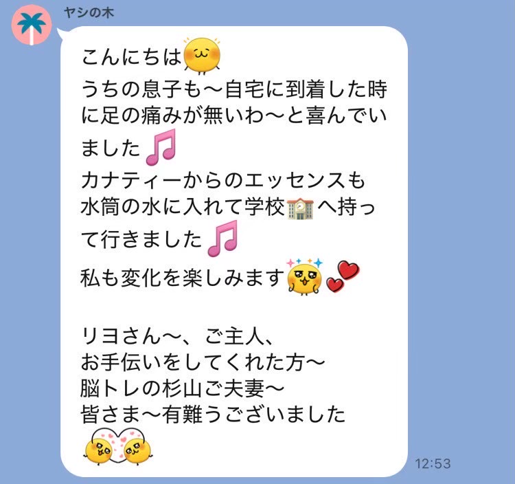 今回もお世話になりました。 だいぶ痛みがなくなり、楽になったようです。 お陰で週末、練習に集中することができました。 体の使い方ま教えてくださり、いつもありがとうございます。